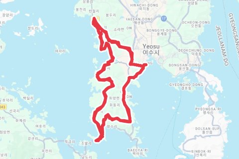 여수시 지역의 자전거 코스 6개를 탐색해 보세요.